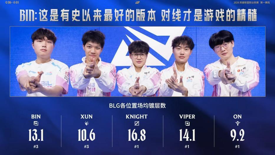 虎扑01月20日讯 BLG各位置场均镀层数:中下排名第一,上野排名第三
