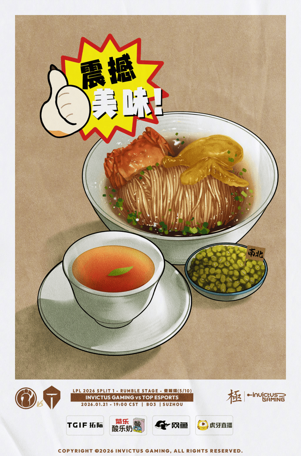 IG vs TES赛前海报:来一份苏州限定冬桃套餐吧;破阵