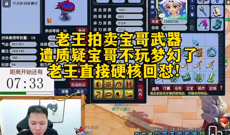 没想到,老王一秒都没犹豫,直接硬核开麦回怼:“谁说宝哥不玩梦幻了?你们知道齐天大圣仓库里囤了多少好东西吗?满满当当,全是给宝哥备着的!宝哥早在一个星期前就跟我打招呼,让我准备一大堆书铁——只是打造等级还没开放而已。所以大伙儿把心放回肚子里,宝哥一定会回来!”