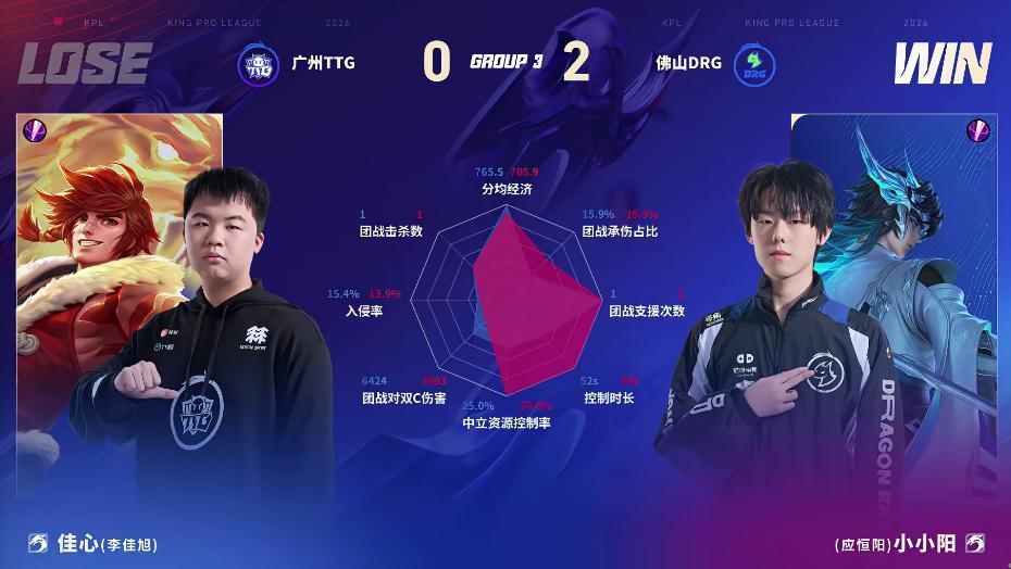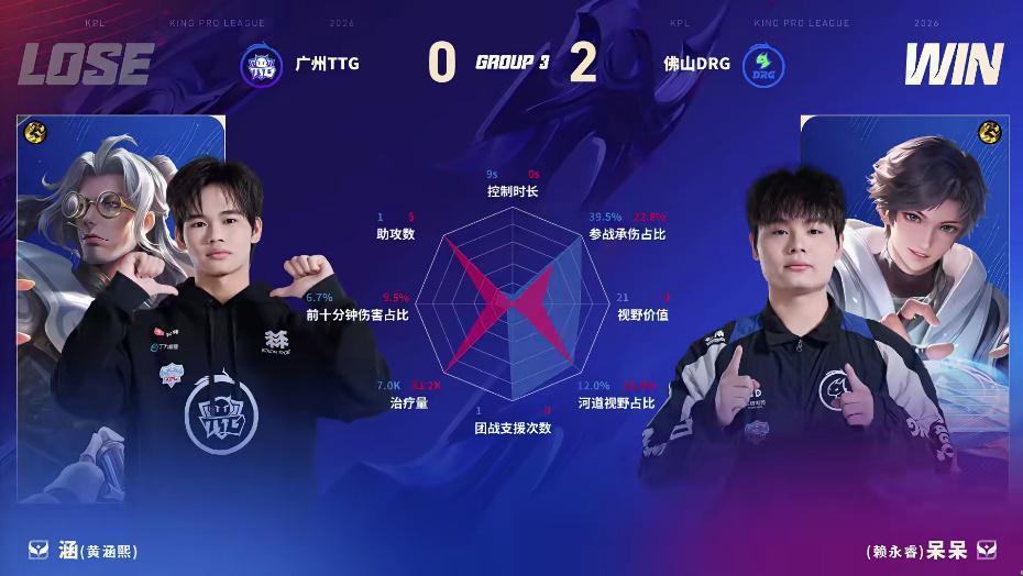 DRG/TTG第一局数据图:梦岚戈娅表现优异几乎包围小雪