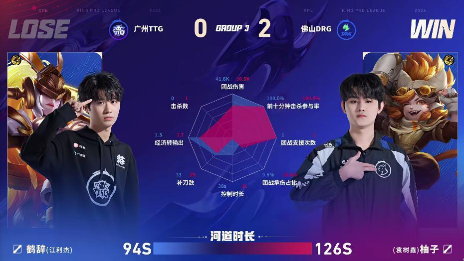 DRG/TTG第二局数据图:梦岚敖隐零死亡对位领先