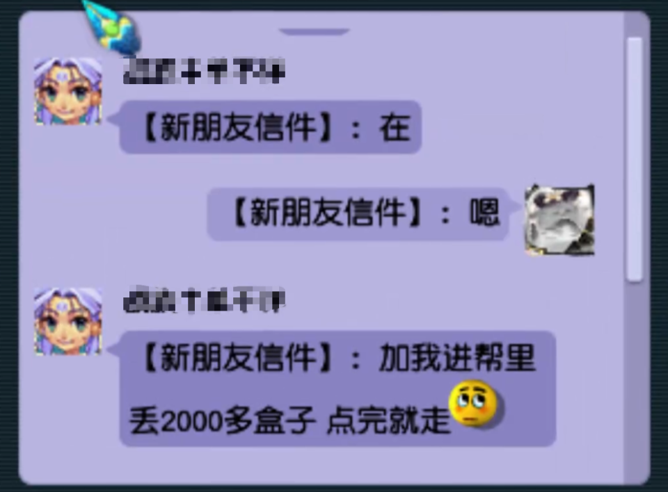 近日,【金戈铁马】服务器第一帮派“幽水雅阁”副帮主透露,自己连同帮派多位兄弟遭遇了连环盗号事件。骗子先是伪装成需要丢弃2000多盒子的玩家加入帮派,进入帮派群聊后,蛰伏一个多月,暗中模仿帮主的聊天习惯,并用小号一比一仿造了帮主的“绿泡泡号”。
