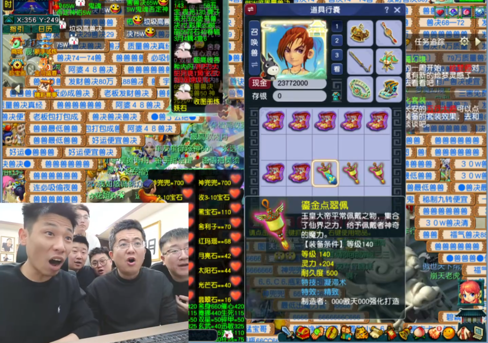 农历新年将至, 坐拥上亿资产的旭旭宝宝在大本营“广饶”举办年会,力邀旗下多位梦幻人气主播出席,畅玩服知名指挥“秦风”也在其中。为增加气氛,宝哥直接安排一场盛大的直播,并准备近千件5孔未鉴定装备,让多位主播试试手气。接下来,就让我们来看看哪位主播的手气最旺。