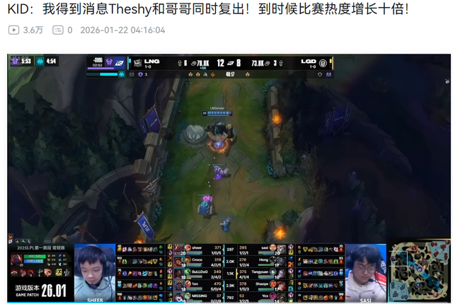 LPL两大流量或同时复出,前iG名宿亲自下场爆料!Theshy并未否认