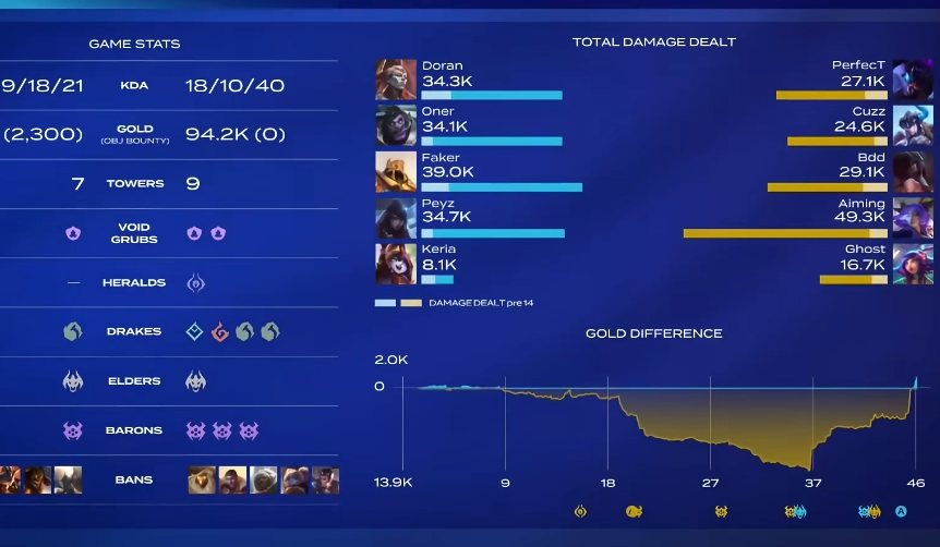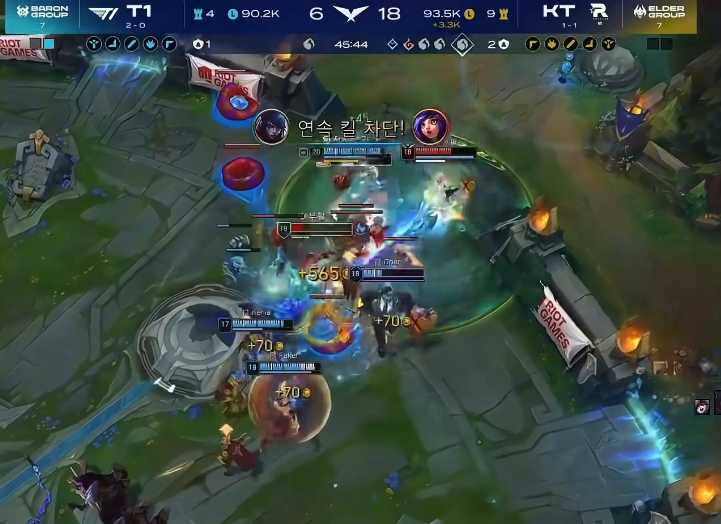 但是第二把一上来,KT就找回了状态,一度碾压着T1,本来以为KT会还以颜色,好好欺负T1一把,但是水都不会想到,即使拿到了水龙魂和大龙,但是KT依旧打的不够果断,硬是拖到了大后期,给到了T1机会,加上Oner又开始了,抢龙成功,T1吹起翻盘号角。