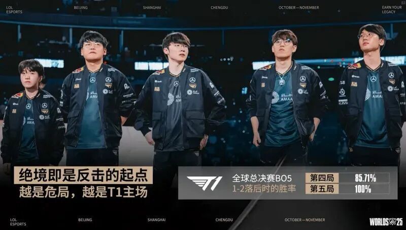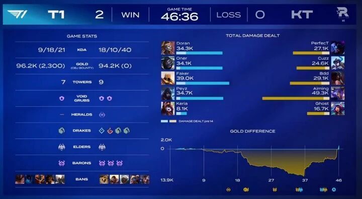 今日LCK进行了一场焦点战T1 vs KT,是去年世界赛决赛的重演,T1再次上演神级翻盘。第一局T1领先1万经济+土龙魂,很顺利就赢了下来。第二局T1陷入天大劣势,人头1:15,落后超过1万经济,对手KT还拿了水龙魂+大龙。T1在悬崖边时,Oner蒙多抢到远古龙,为T1续命。随后双方进行一些人头的交换,T1拿大龙,KT拿远古龙。KT也很稳,先拆掉T1的3路水晶,实在没拆的,只能开团了。T1背水一战,Oner蒙多帮Peyz厄斐琉斯挡了猪妹大招,Peyz大后期厄斐琉斯火力全开,瞬秒Cuzz猪妹。T1的判断很好,知道这是翻盘的机会,即使落后远古龙+水龙魂仍追了出去并团灭KT,一波翻盘!这局游戏进行了46分钟,T1最多时落后1万4千经济!Faker获得了这场BO3的最佳选手,首局瑞兹完成单杀,次局沙皇拖住局面。在BDD还没出道的时候,Faker就已经是天才中单单杀王。如今BDD已经步入职业生涯巅峰期,怎么Faker还能单杀BDD啊,真的是不老魔王,又活一世!赛后采访Faker谈到第二局的惊天翻盘说:“虽然不是肯定能赢,但我们判断拖后期这局游戏胜率最高。”他优势时,直接就抽你陀螺,把你打成人机3:0。他劣势时,却能一直赖着不死,即使最后你赢了也压力很大,如果你稍有失误,就可能被翻盘。T1的翻盘能力不仅体现在每一局小局,更体现在BO5的系列赛。T1在世界赛1-2落后时,第四局胜率高达85%,第五局胜率更是惊人的100%!并且这个是去年八强赛T1战胜AL时的数据。决赛T1打KT,也是先1:2落后,最后翻盘夺冠,所以实际数据还要再高一些。优势局谁都会打,随着LOL的高度职业化,顶尖强队之间的差距很小,谁也不能保证一直优势。T1堪称史上最强翻盘队伍劣势之王,所以才能获得那么多冠军。新赛季LCK杯T1取得开赛3连胜,比起前几年,他们在国内的表现还更好了。T1有个优势是稳定性,其余队伍在转会期玩排列组合,T1每年只换1个人,算阵容变动小的了。新援Peyz融入T1也非常快,不同于Gumayusi的打线,Peyz风格更偏向于后期Carry,更擅长玩厄斐琉斯,泽丽和卡莎这些英雄。T1的选手也都很喜欢Peyz,经常在采访里夸他。虽然现在说还太早,但大概率今年T1仍然是在国际赛事很强的队伍,LPL队伍仍然要挑战T1。
