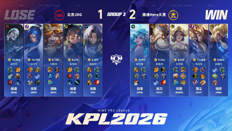 清融在这个赛道没有对手。Hero3-2战胜JDG,坦然面对老队友拿到了胜利,白清面对无畏也证明了自己的实力。而落尘虽然状态有波动,但整体上还是比无双好太多了。
