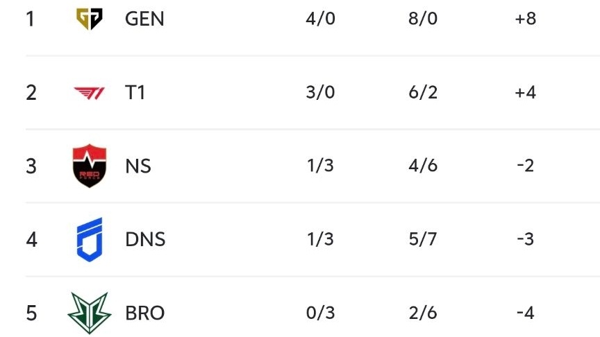 另一场比赛,是两个组的第一名,DK和GEN对决,赛季初的许哥,确实有点东西,但也仅限于欺负一下弱队,遇到GEN这种内战幻神,DK毫无招架之力,直接2:0速通零封,不过许哥也没被爆得太厉害,只能说勉强尽力,上下野三条线的差距太大了,尤其是上单,Siwoo全程被Kiin暴打。