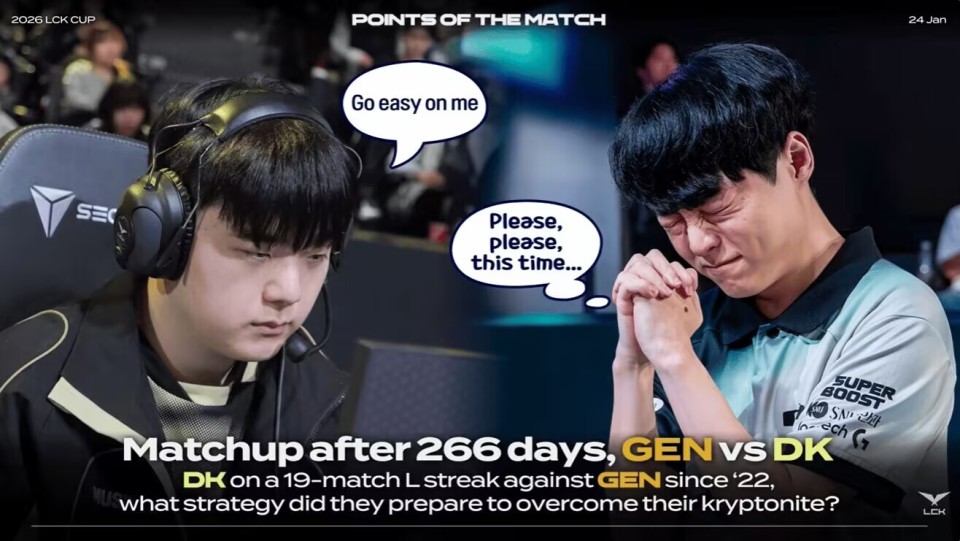 现在这种版本,上路对位能落后6K,是真的很难做得到,不过期待DK赢GEN,本身就不现实,内战幻神的名号,可不是吹出来的,这场比赛输掉之后,DK对战GEN的大场战绩,已经来到20连败了,DK上一次击败GEN,还要追溯到21年夏季赛,常规赛第一轮的时候,许哥带队赢过一次。