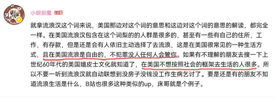网友之所以觉得他“崇洋媚外”,并不一定是反感他讲美国文化,而是反感一种话术:当国内语境在讨论“失业焦虑”和“社会兜底”时,他却把焦点引向“别人流浪也挺体面”,这无形中削弱了对制度问题的讨论,说得直白一点,这听起来更像是在为美国社会的结构性问题找“浪漫化解释”。