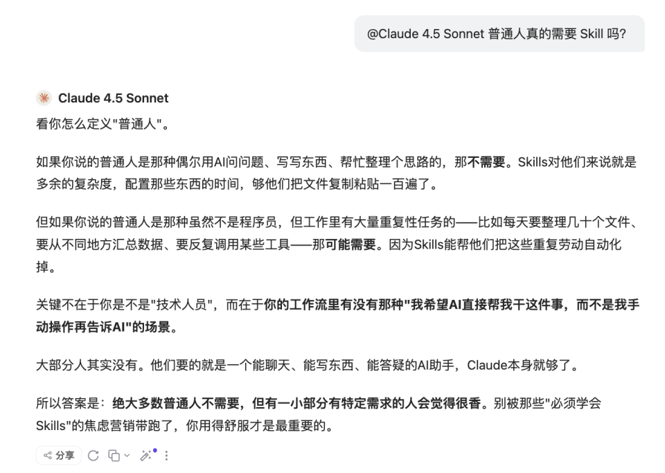 构思这篇文章的时候,我跟Claude交流过,我的问题是:普通人真的需要Skill 吗?