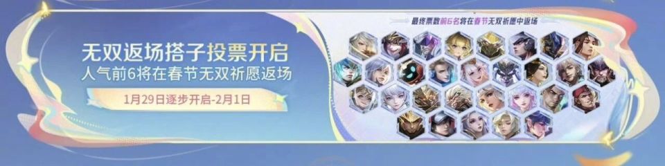 另外小王今年开了一个全新的返场投票活动,以后投票返场越来越多了,这下好了以后冷门皮肤不用返场了,反正也投不过。这次的投票返场有六款皮肤,而且说明了是无双返场搭子。而现在的无双返场机制是一款新无双带一款旧无双上线,再带三款限定返场。所以这次至少有两款无双池子,一个是墨染江湖的李信+公孙离,另一个基本上就是青丘九尾了,但是不知道妲己的池子会不会还有另一个无双。投票活动会在1月29日开启,这些皮肤里有很多已经抽奖返场过的皮肤了,大热门不是没有,只是返场的次数有点多。最后究竟谁会脱颖而出参加这次的抽奖返场呢?我给王昭君的星穹之声一票。