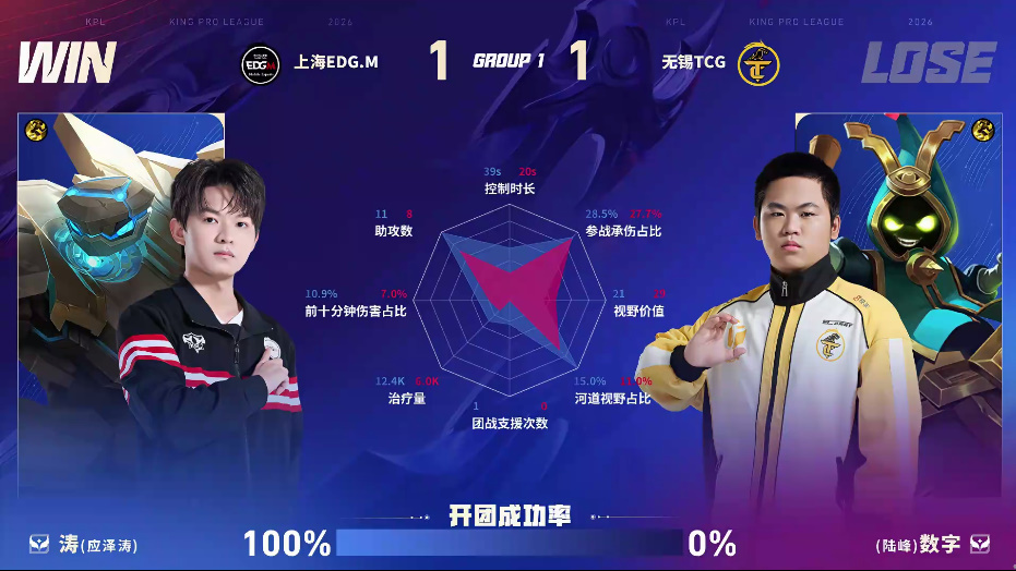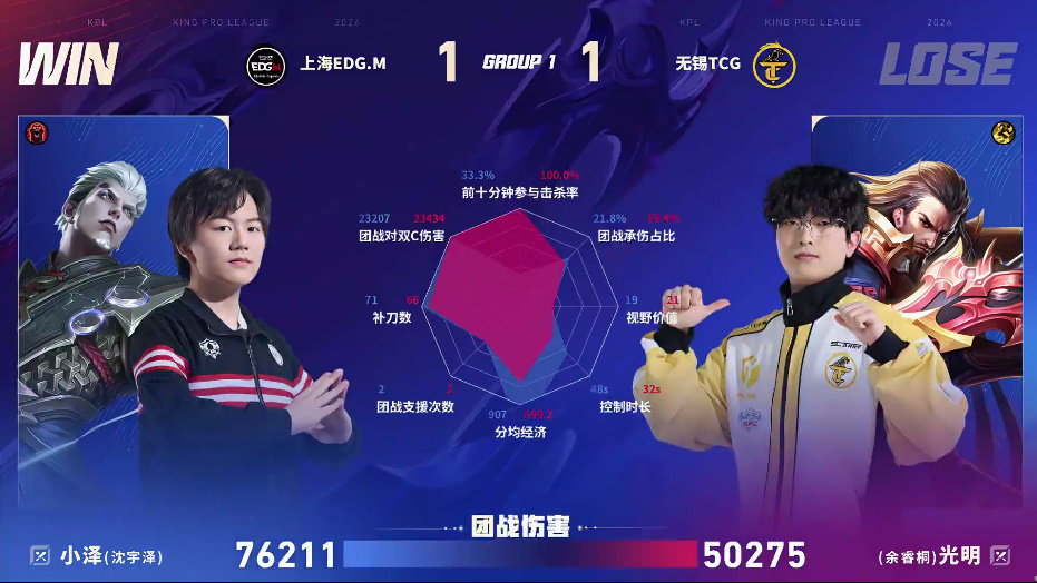 EDG.M/TCG第二局数据图:小泽司空震团战伤害七万多