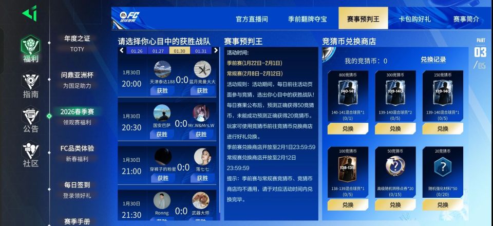 1月26日和27日,2026FC足球世界职业联赛春季赛的季前赛(FMCL)来到了入围赛的最后一个阶段:16进8。经过2天的激烈比拼,晋级总决赛的8强选手已经全部产生,他们将于1月30日和1月31日进行最终的决赛比拼。