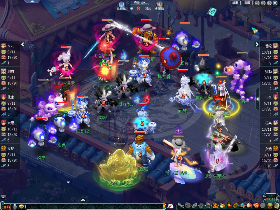 面对珍宝阁时,风少在弥勒山获得灵元后,第一时间召唤出大佛。这尊大佛会在回合结束后随机对三个单位施加因果法术,若运气够好,可同时控制对手三个单位——但问题在于稳定性不足,且会占用召唤幻蛇的位置,与女魃墓体系兼容性欠佳。