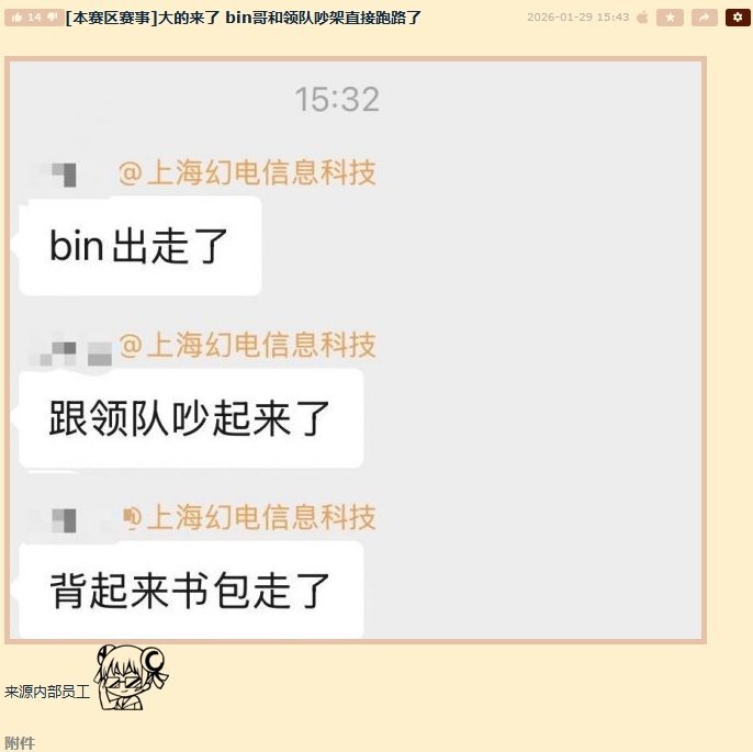 事情是这样的,29号上午,有知情网友爆料,BLG上单bin与领队吵架,具体原因未知,但据说闹得很不愉快,BIN疑似直接提包离开基地。