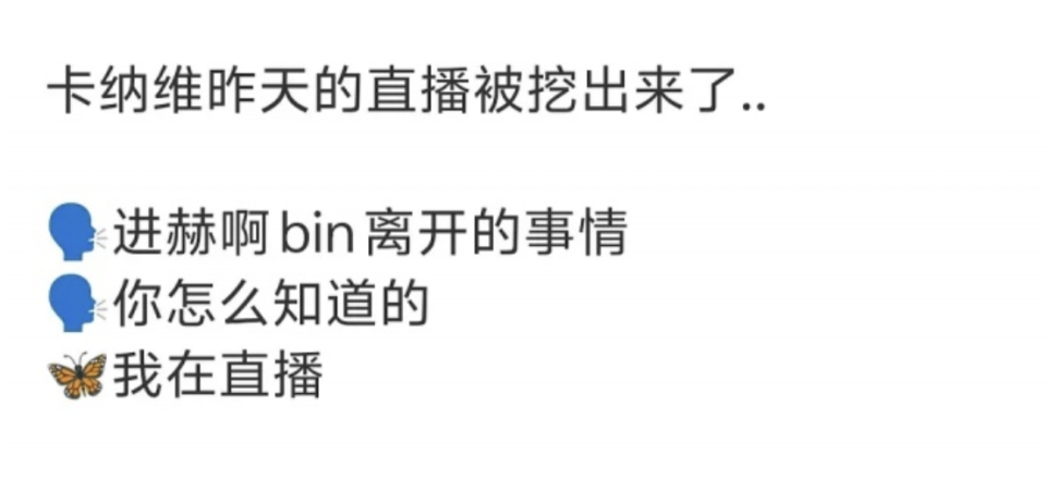 本以为是一件空穴来风的事情,没想到BLG官方这波下场,直接将这件事似乎给坐实了,而关于BIN离队的传闻也立刻传到了LCK那边。根据网友们的发现,今天包括peanut,Kanavi都有吃到bin离队的瓜。