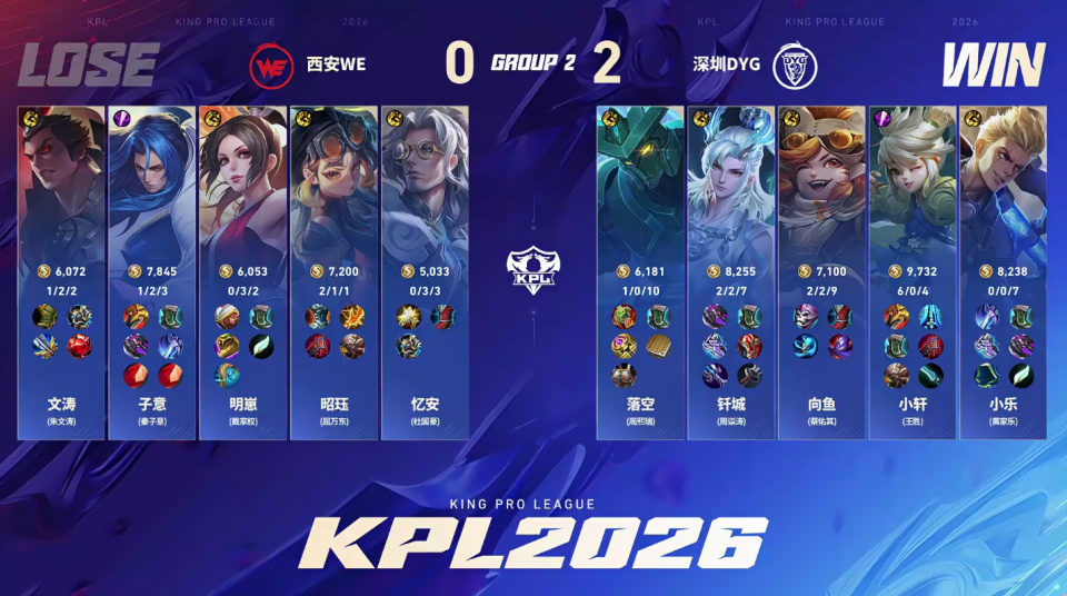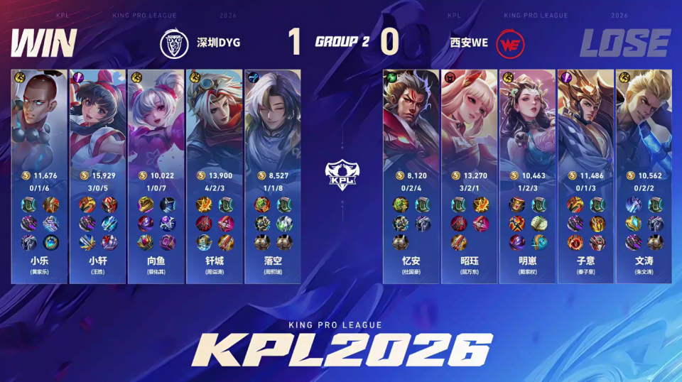 DYG和WE,过去的几年这两支战队都是B组沉沦,如今竟然是在竞争S组的比赛中交手,今年春季赛的变化还是太大了。长相酷似柯洁的辅助落空打得很出色,向鱼也证明了自己还有油。小乐应该是退役选手复出之后效果最好的,小轩这个赛季的表现也有明显进步,钎城的坚守终于有了结果。