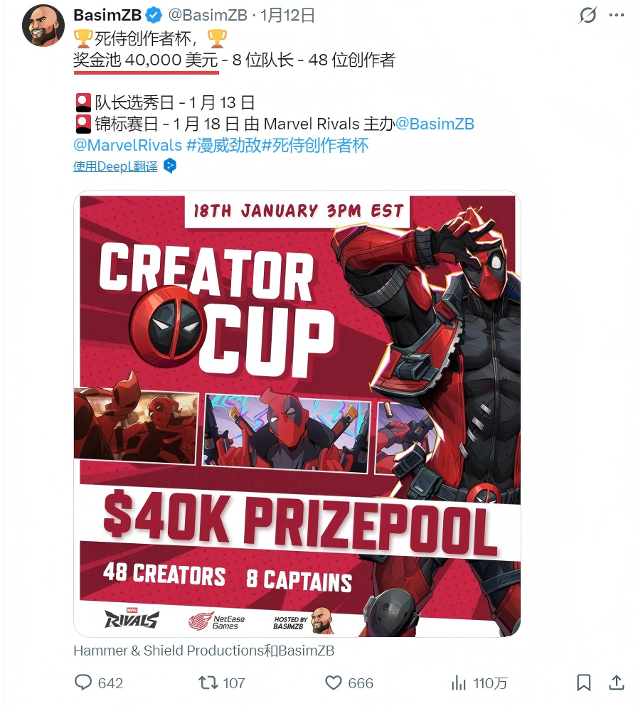 这里的4万美元奖金比赛,指的是外网Twitch上举办的《漫威争锋》死侍创作者杯,参赛者都是这游戏的主播。