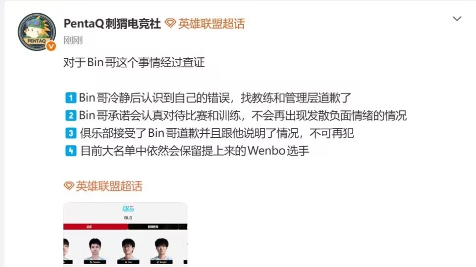 BLG上单离队闹剧结束!Bin哥主动低头认错,韩网:应该放弃他才对
