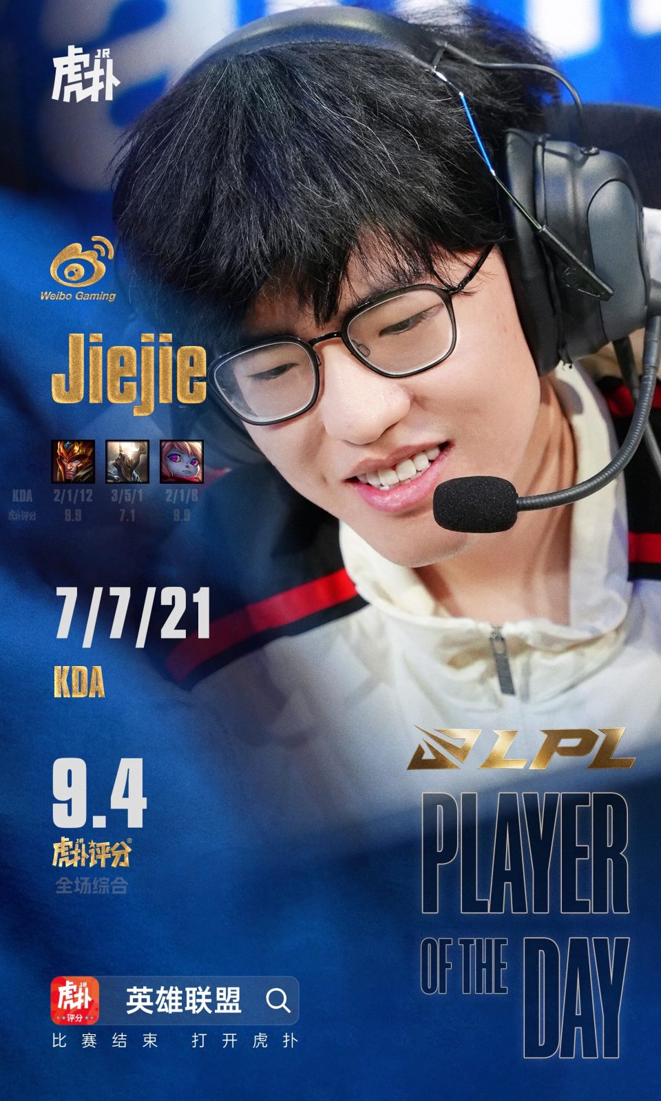 经过JRs的评选后,Jiejie以84.0%得票率荣获昨日最佳选手。