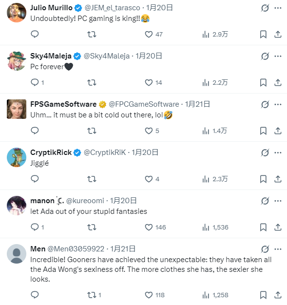 近日游戏博主AlphaFox发推文,以《生化危机》艾达王的主机版和PC版造型对比,称“PC游戏永远比主机游戏更好”,这也让众多玩家热烈讨论起来。