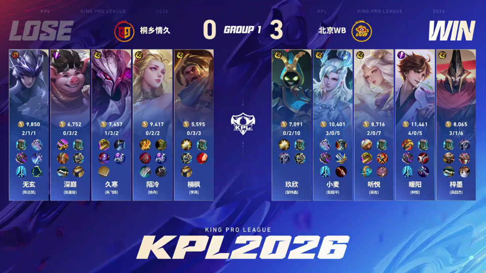 WB3-0横扫情久锁定S组,本以为是强强对抗,后来发现WB还是太强了。更可怕的是,WB感觉是玩着玩着就赢了,甚至第三局暖阳拿出了三年多没有用过的李白,还拿到了MVP。