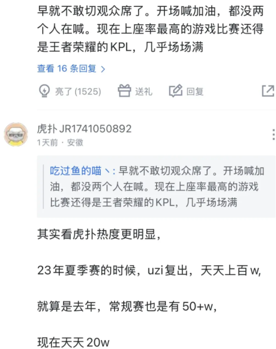 官方当然在努力补救,但问题是,这不是一次改赛制、降票价就能解决的事,LPL现在面对的,是“观众为什么还要继续看”的根本性问题,如果不能重新培养能让观众产生情绪共鸣的选手、故事和荣誉感,那么S16的热度下滑,恐怕只会是一个开始,而不是终点,对此你们有什么想说的吗?