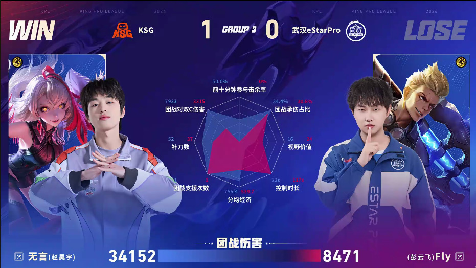 KSG/ES第一局数据图:小屿戈娅全包围亮宇公孙离