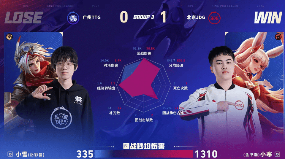 JDG/TTG第一局数据对比:无畏张飞团战支援成功率百分百