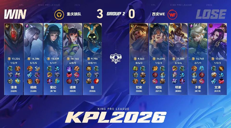 狼队3-0WE,皖皖成火甲代言人,清清再秀白起,道崽直言目标冠军