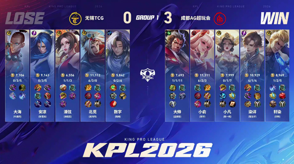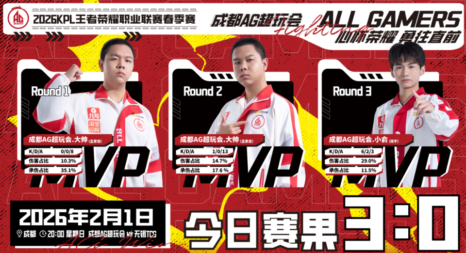 AG3-0横扫TCG,第一阶段顺利收官。打了五个大场,终于是有个零封了。大帅的状态明显回暖,几乎每场比赛都要尽全力的轩染终于也能躺一次了。小俞也是肉眼可见的开心。