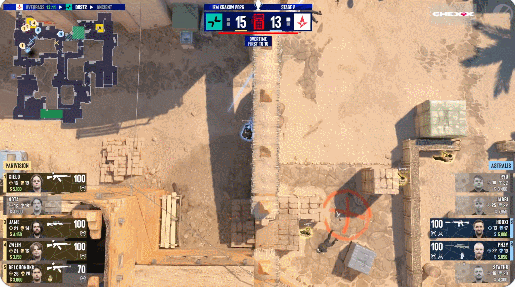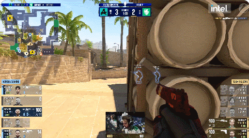 图二Mirage开局两队互相翻盘,NiKo一把沙鹰和小孩打赢2V3,助队伍5-3反超。随后soulfly完成残局双杀,京介以MAC-10超市吹3个,猎鹰的道具、架枪失误频出,半场两队握手言和。换边猎鹰终于赢下手枪局,长枪局猎鹰先3B失守,而后又毫无纪律性输掉5V2残局。关键局猎鹰经济局4人守A翻盘,京介后程发力单图24杀,终结完成劣势回防扳回一城。