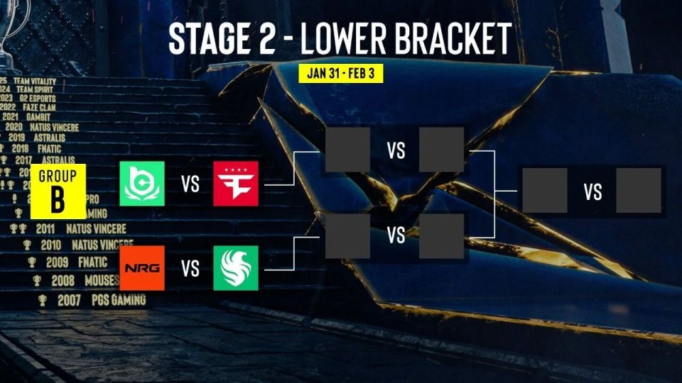 今天21:00继续第二阶段的争夺,赛程如图,尤其是BC.G与FaZe的生死战,Falcons与NRG的生死战同时开打,欢迎届时收看。