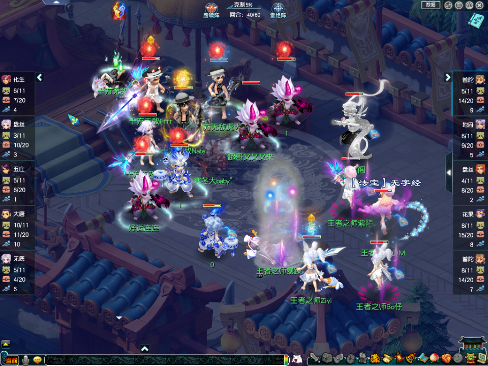 【十方无敌】(对战方)阵容为:化生、五庄、盘丝、三扫大唐、女魃;