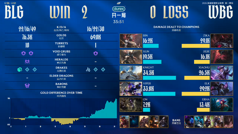 LPL第一赛段:毫无意外,BLG横扫WBG,紧追AL