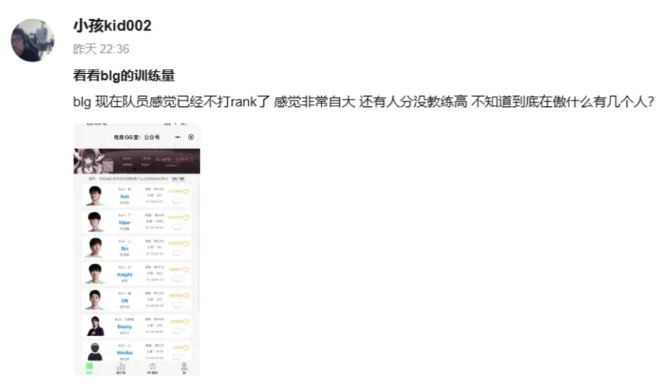 Kid曝光BLG内幕,选手已经不rank训练了,分还没有教练高
