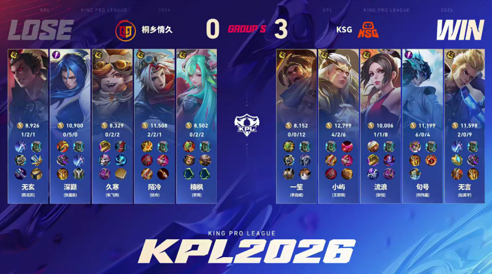 这一局,对于情久来说崩溃的是杨戬开局就崩了,又是10分钟的节点,KSG一波结束比赛!