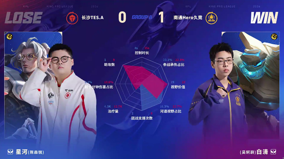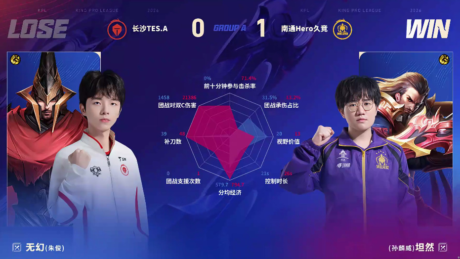 虎扑02月04日讯 Hero/TES第一局数据图:落尘/妖刀分均经济爆表