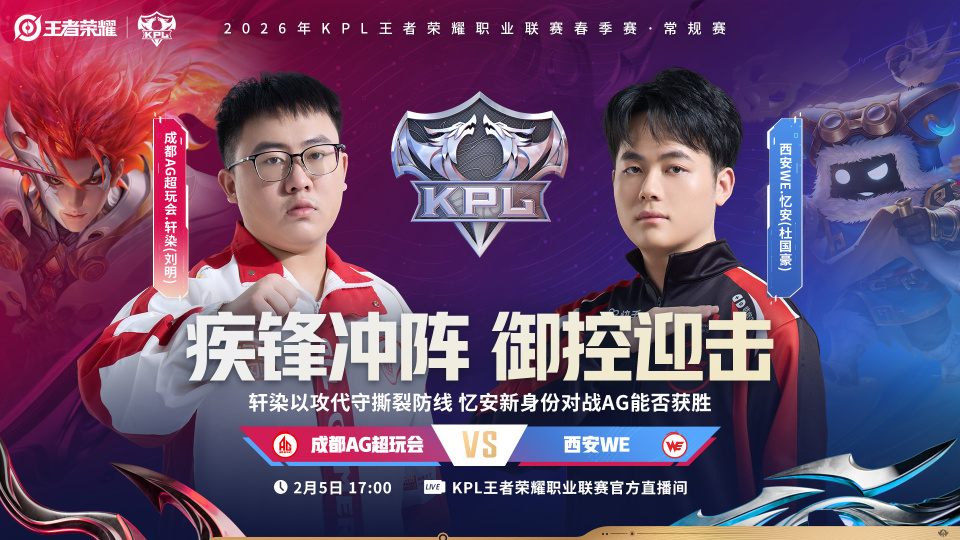 AG在A组的首秀,对手是WE!这场比赛安排在下午的五点。AG超玩会在本赛季中野射三个FMVP缺阵之后,队伍实力相比2025可以说降了不止一个档次,在首轮仅取得3胜2负的战绩,除了最后一场,对阵垫底的无锡TCG打出3-0之外,其他的两场赢得都相当艰险。