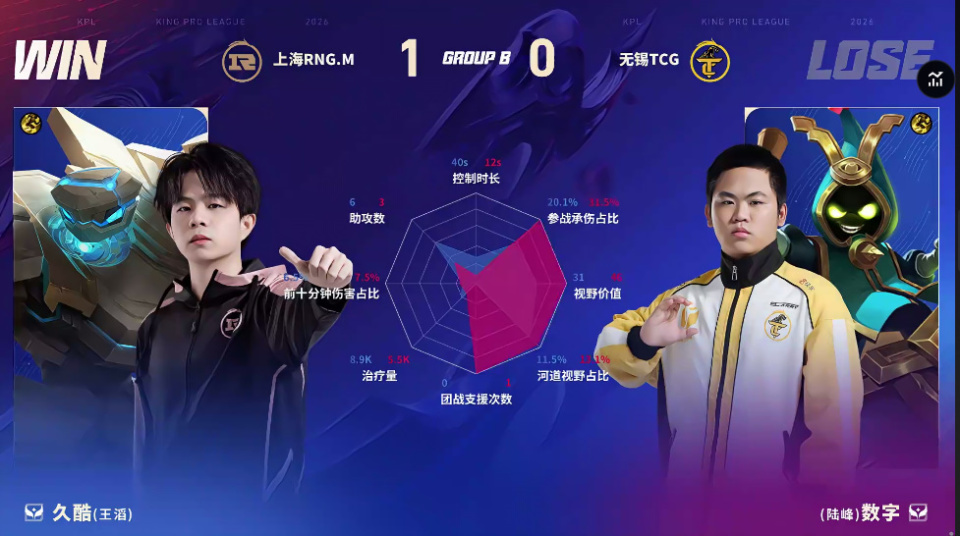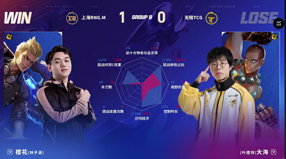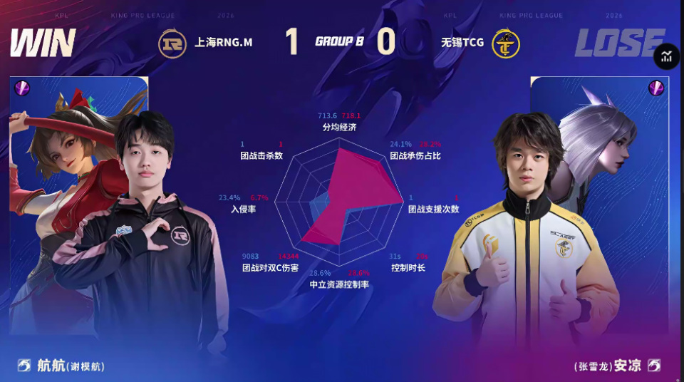 TCG/RNG.M第一局数据对比:奕雨艾琳团战秒均伤害高达1051
