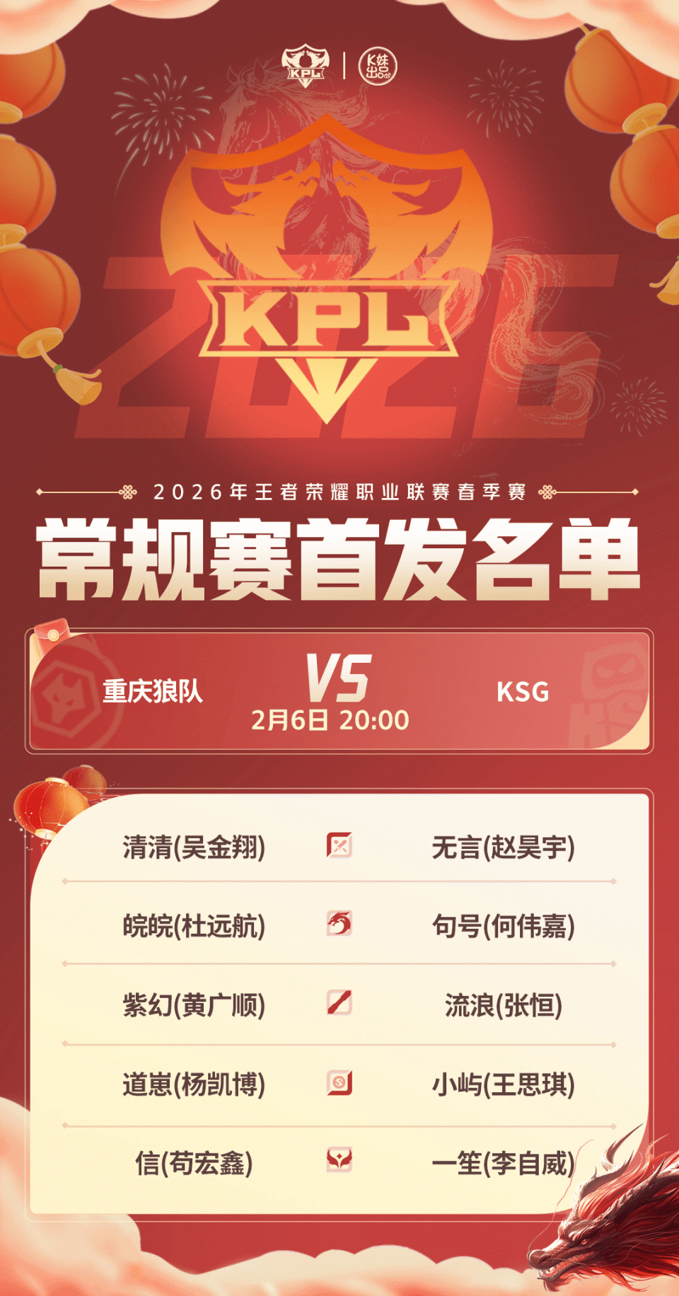 2026KPL春季赛常规赛第二轮W1D3【首发名单】送达 !