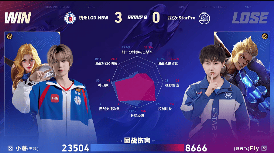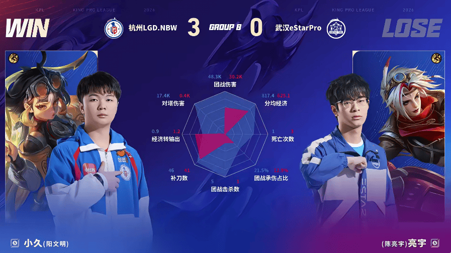 LGD/eStar第三局数据对比:小久蚩奼多数据包围亮宇戈娅