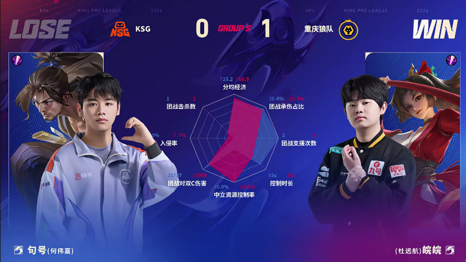 虎扑02月06日讯 狼队/KSG第一局数据图:紫幻小乔四连超凡