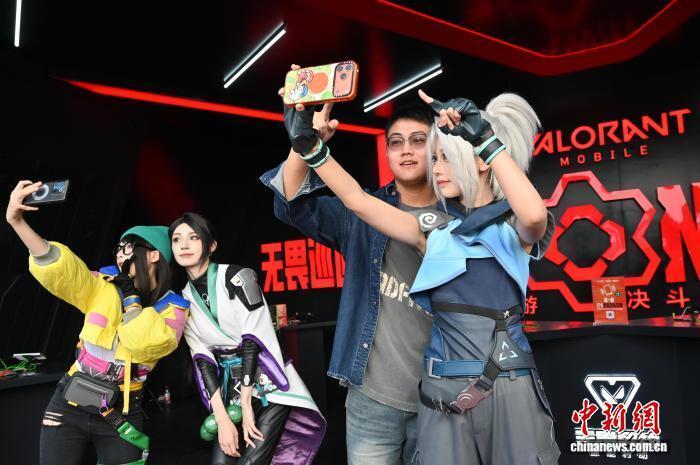 图为电竞游戏人物扮演者吸引观众合影。中新社记者 陈楚红 摄