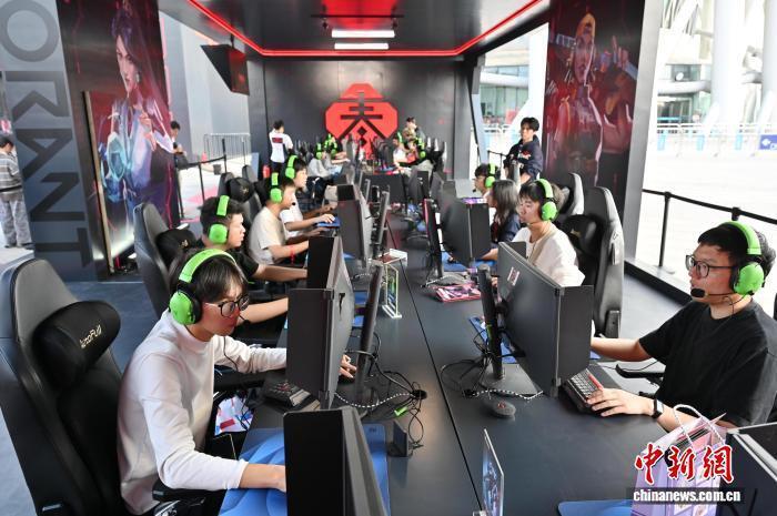 图为年轻人在现场体验电竞游戏。中新社记者 陈楚红 摄