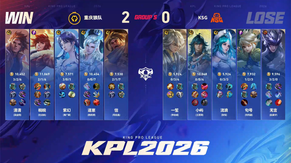 狼队3-0KSG,皖皖继续偏爱火甲,紫幻小乔四杀,信对位压制一笙