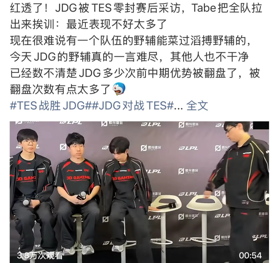 JDG一亿投资阵容翻车,Tabe采访红温,曝红米语音零介入