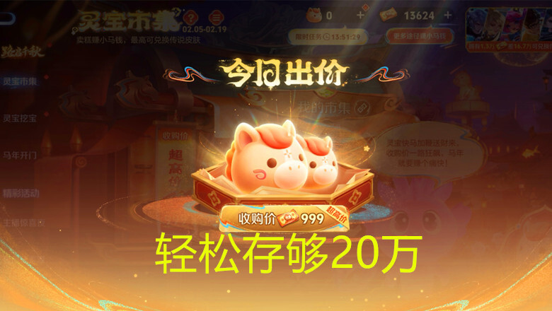 王者荣耀春节福利已经在陆续上线中,而最先开启的就是灵宝市集了,因为该活动可以获得传说皮肤,而且还可以兑换道具,其实今年的灵宝市集玩法非常的简单,玩家在对局中可以自动参与灵宝挖宝活动,有的运气好的玩家直接挖到了“云中蝶”,可以直接兑换5w小马钱,然后再售卖小马糕换取小马钱,所以存够20万小马钱还是非常容易的。
