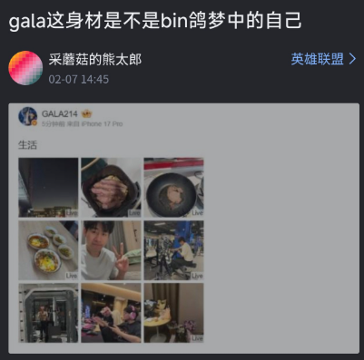 Gala晒出腹肌照震惊众人!Bin哥深夜也晒身材:只是没认真练,认真练肯定比gala强!